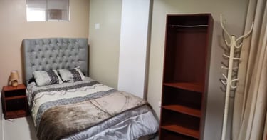 •Dormitorio con ropero y mesa de estudio con lámpara
