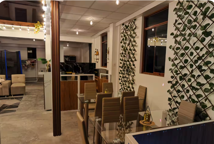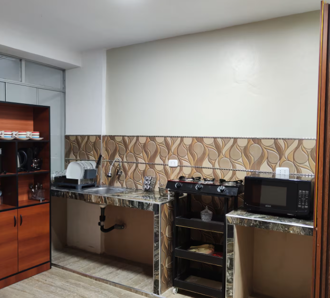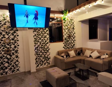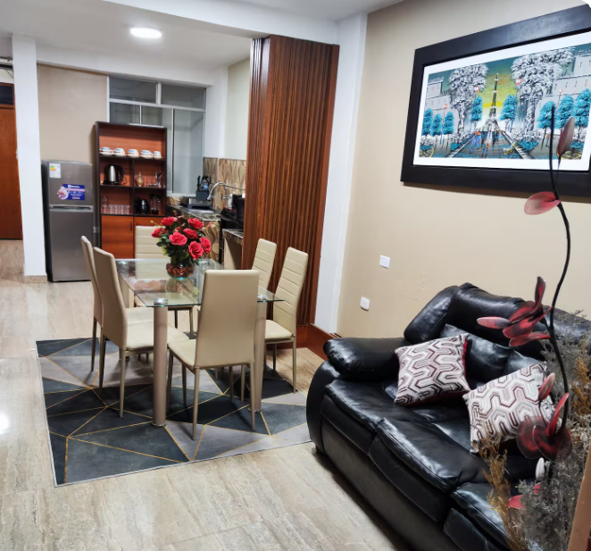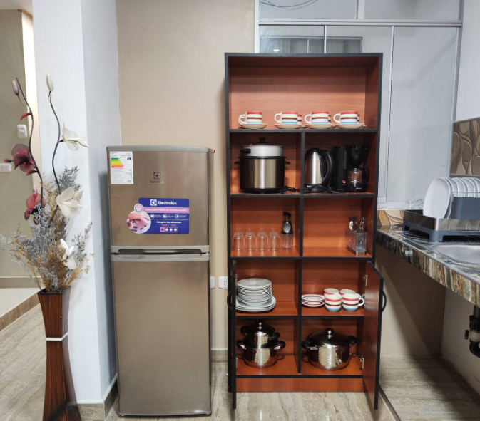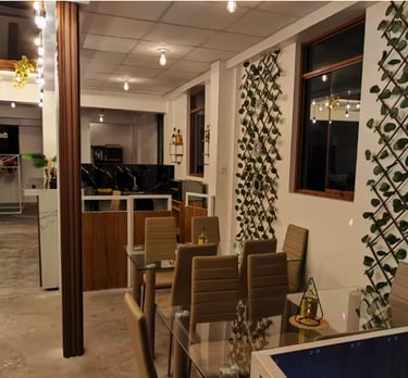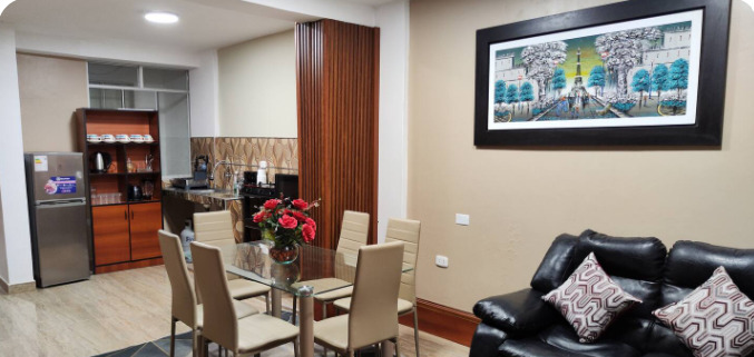 sala con buena iluminación, espacio de trabajo con tomacorrientes,tv de 60 pulgadas, Wi-Fi rápido, cocina equipada. Uso para huéspedes de Golden Garden (según disponibilidad).
